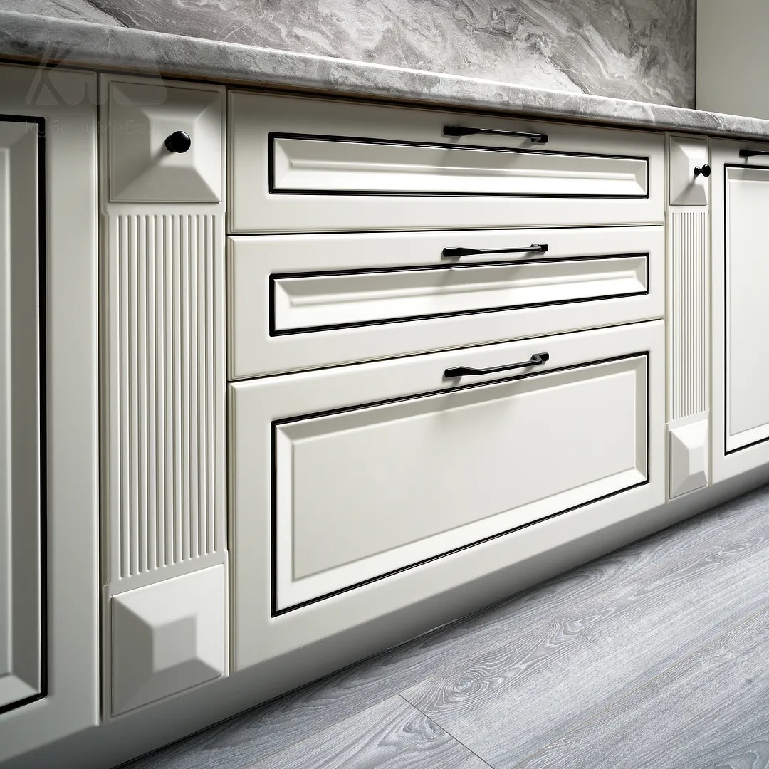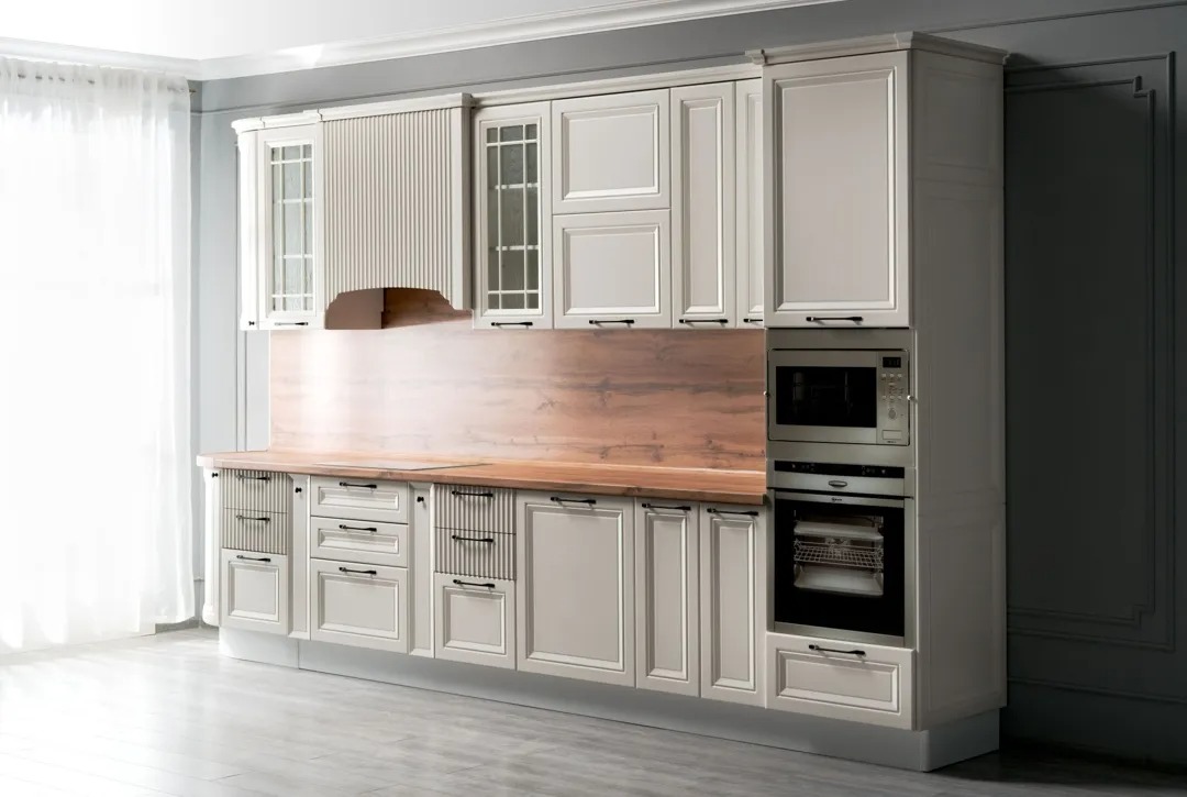 Модульная кухонная система "Molto Bella" представляет собой идеальное сочетание функциональности и элегантного дизайна, созданное для того, чтобы удовлетворить самые изысканные вкусы и требования. Эта кухня предлагает единый модульный ряд, который обеспечивает гармоничное и эргономичное пространство, адаптирующееся под индивидуальные нужды каждого пользователя.